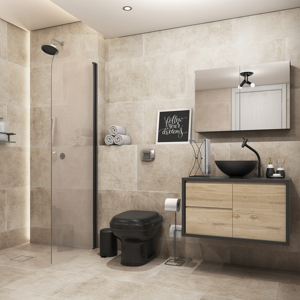 Kit Vaso Sanitário Convencional com Assento Preto Brilhante Saída Vertical Thema Incepa