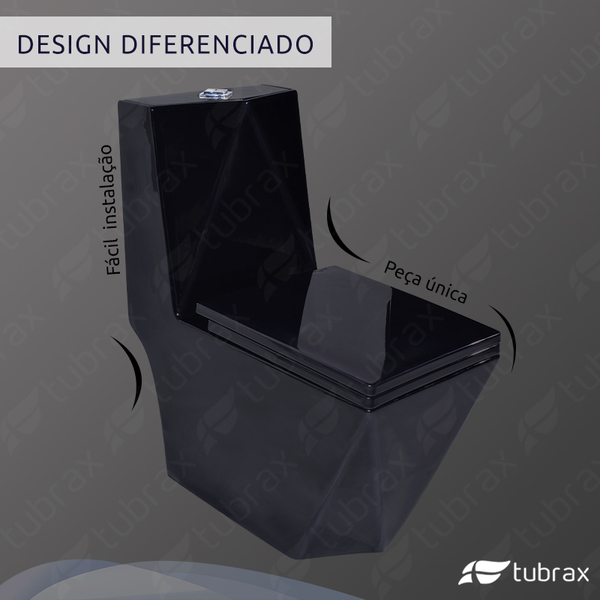 Vaso Sanitário Monobloco Completo Caixa Acoplada Privada Preto Modelo Diamante Tubrax