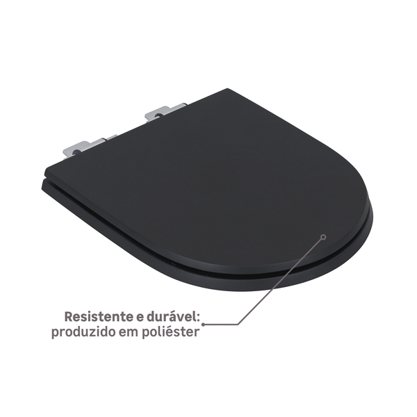 Assento Sanitário Formatos Carrara com Soft Close Quadrado Poliéster Preto Fosco Policlass