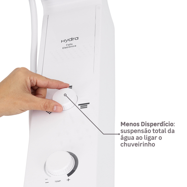 Chuveiro Elétrico Eletrônico Falls, da Hydra Transforme seu banheiro e eleve sua experiência no banho. Personalize seu banho, com duas saídas de água Com duas saídas de água o chuveiro elétrico Fallsoferece uma experiência de banho versátil e personalizada. A opção de ducha proporciona um jato direcionável e concentrado, ideal para momentos de relaxamento ou para direcionar a água com precisão para áreas específicas do corpo, enquanto o chuveiro oferece um jato mais espaçado cobrindo uma área maior e garantindo uma sensação de banho revigorante. Compatível com aquecimento Solar e a Gás Compatível com sistemas de aquecimento a Gás e solar, o chuveiro elétrico Falls oferece alta versatilidade, permitindo que você escolha a fonte de energia que atende às suas necessidades. Banho na temperatura ideal, com controle gradual eletrônico O controle eletrônico de temperatura permite que você ajuste a temperatura da água de forma gradual e precisa, encontrando facilmente a temperatura ideal para o seu banho. Instalação simplificada, com engate fácil O engate fácil oferece uma solução simples e conveniente: ao contrário dos métodos tradicionais que exigem girar o chuveiro para fixá-lo no cano da parede, o engate fácil elimina essa etapa. Em vez disso, a própria peça do engate que é rosqueada no cano da parede e o chuveiro encaixado na peça, proporcionando uma instalação rápida e sem complicações. Mais conveniência, com troca fácil da resistência O sistema de Troca Fácil da Resistência te oferece mais uma conveniência: ele elimina a necessidade de abrir ou retirar o chuveiro para substituir a resistência, o que permite que qualquer pessoa possa fazer a troca. Conheça mais detalhes sobre o chuveiro Falls : O chuveiro ainda conta com tensão elétrica de 127V (110V) e potência de 5500w, para um banho quente e revigorante. E para garantir tranquilidade, conta com uma garantia de 12 meses e resistência blindada, que oferece mais segurança e durabilidade, impede que o chuveiro queime facilmente e diminui as chances de choques elétricos. Além disso, por serem feitos de borracha, os “furinhos” do chuveiro são mais fáceis de limpar, bastando utensílios simples como panos, escovas com cerdas macias e sabão neutro. Outras características: – Acompanha chuveirinho: uma opção mais direcionada e delicada para o banho. Leroy Merlin Instala: Além de todas as vantagens que este produto já oferece, é possível garantir o melhor desempenho do seu chuveiro por ainda mais tempo com uma instalação adequada, feita por profissionais realmente qualificados. Ao contratar o Leroy Merlin Instala junto com o seu chuveiro, você tem mais de 2.200 profissionais certificados e validados à sua disposição, ganha mais pontos no Programa de Fidelidade Leroy Merlin com Você e pode fazer o parcelamento do serviço na mesma compra. E aí, gostou do Chuveiro Elétrico Eletrônico Falls, da Hydra? Compre aqui em nosso site para receber no conforto de sua casa, ou visite uma de nossas lojas