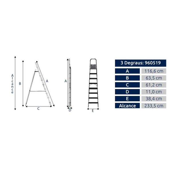 Escada aluminio 3 degraus alumasa