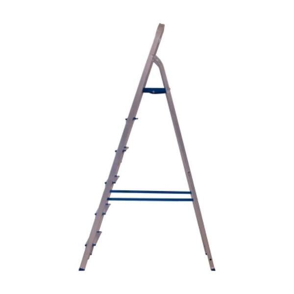 A escada residencial é perfeita para alcançar o alto da estante ou troca a lâmpada da cozinha. ela possui pés e degraus antiderrapantes e tem os pés fixados nos perfis de alumínio evitando que escapem. além disso conta com uma plataforma de plástico de altíssima resistência e travamento na parte superior que garante mais segurança de quem está usando. dados técnicos :: material: metal e plástico :: tipo de material: alumínio e polipropileno :: capacidade de peso: 120kg :: altura da escada fechada: 1 87m :: altura da escada aberta: 1 31m :: largura da escada aberta: 1 02m :: peso do produto: 4 50kg :: tipo: residencial :: cor: prata e azul :: uso indicado: doméstico