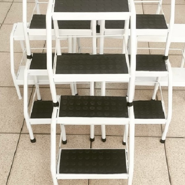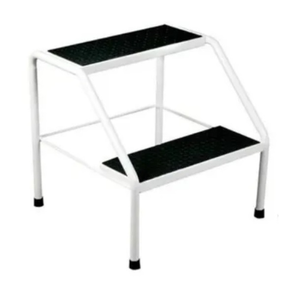 Escadinha com 02 degraus pintura epóxi pés tubulares 3/4 em pintura epóxi com ponteira; dois degraus; revestido em material sintético anti derrapante